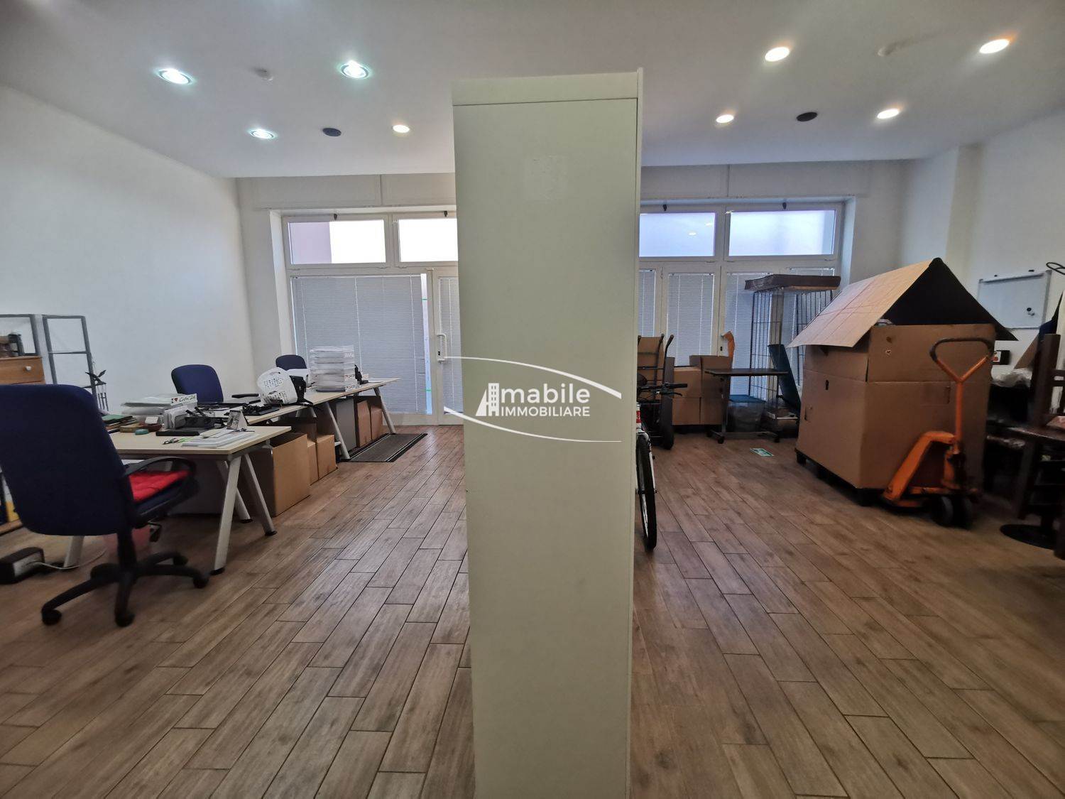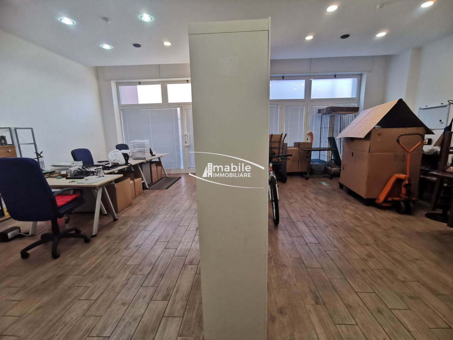 Il locale è così composto: esternamente vi sono 2 ampie ed utilissime Vetrine che danno direttamente sulla strada, con una visibilità quindi ottimale. Internamente si presenta in ottimo stato in quanto in precedenza vi era un ufficio, e ben 65mq calpestabili su di un unico livello rendono questo locale adatto a molteplici attività. Presente anche un Bagno dal quale si accede attraverso un AntiBagno, e data la sua ampia metratura è possibile anche ricavare internamente un Magazzino.
