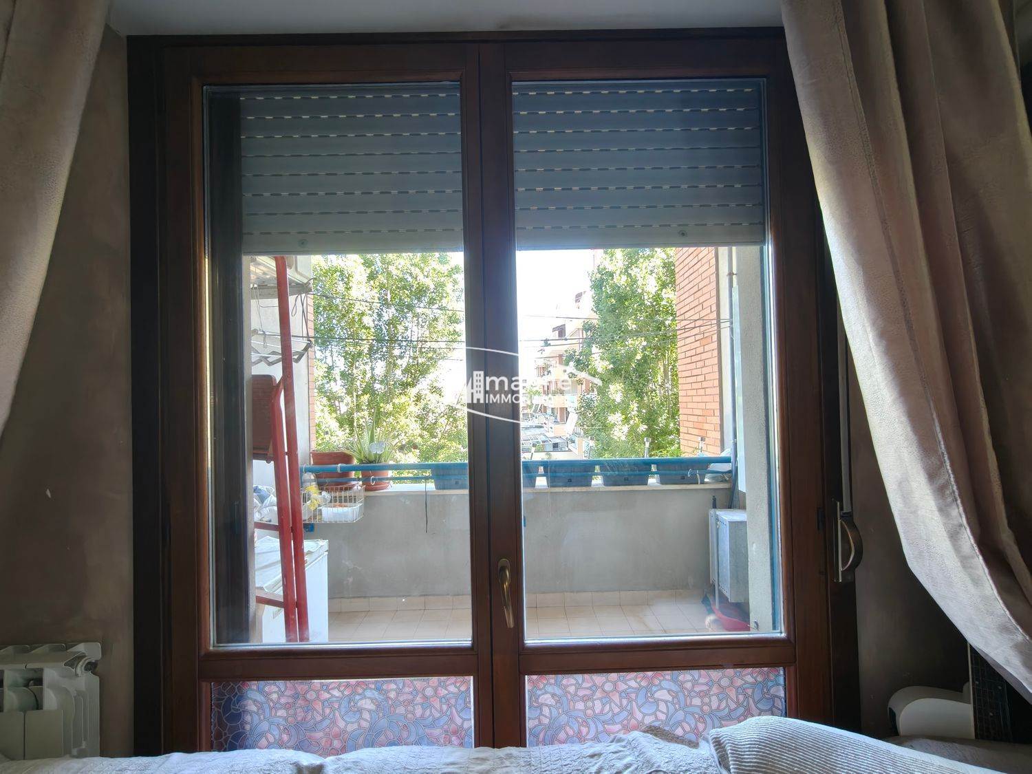 L’appartamento internamente è composto da Salone, Cucina Semi-Abitabile, Balcone Abitabile di 8mq (circa 3,6x2,2m) accessibile sia dal Salone che dalla Cucina, un piccolo Disimpegno, Bagno con Aeratore e Due Camere da letto di 15 e 14mq, delle quali una ha anche un Balcone alla romana.