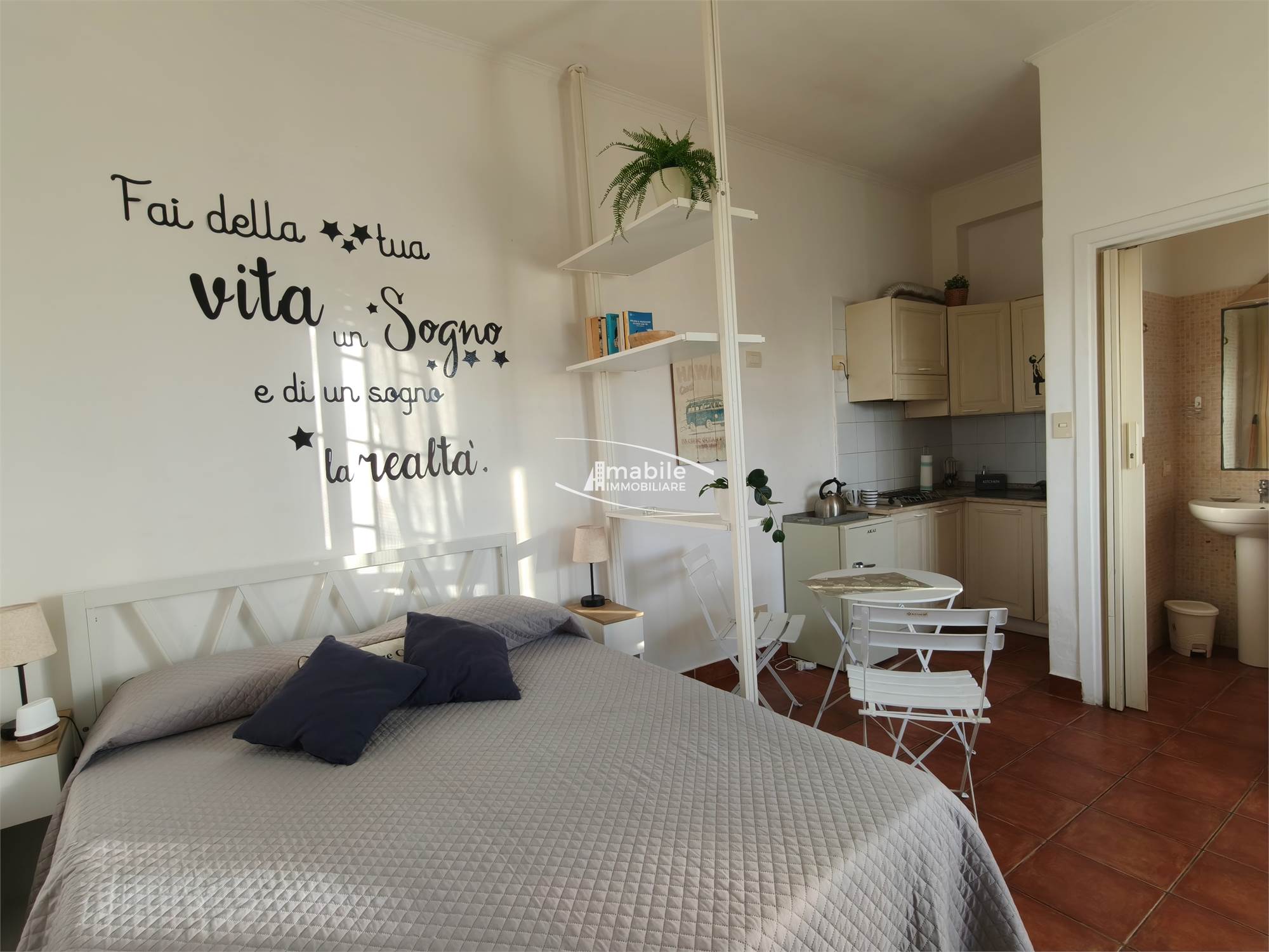 L’immobile ha un ingresso indipendente. Internamente l’intero appartamento è ampio circa 20mq calpestabili, ed è composto da Sala con Angolo Cottura, e Bagno con Finestra. L’immobile è regolarmente accatastato come abitazione, e si garantisce assoluta conformità urbanistica e catastale. Si ricorda che non sono presenti spazi esterni, quindi balcone e/o giardino.