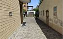 Esternamente, un cancello carrabile ci porta alla Corte di proprietà (vedasi la planimetria mappale alle voci “1” e “2”) in cui vi è sito anche il Box privato di 16mq (5,7x2,7m) con altezza dell’ingresso di 1,76m, e la Cantina.